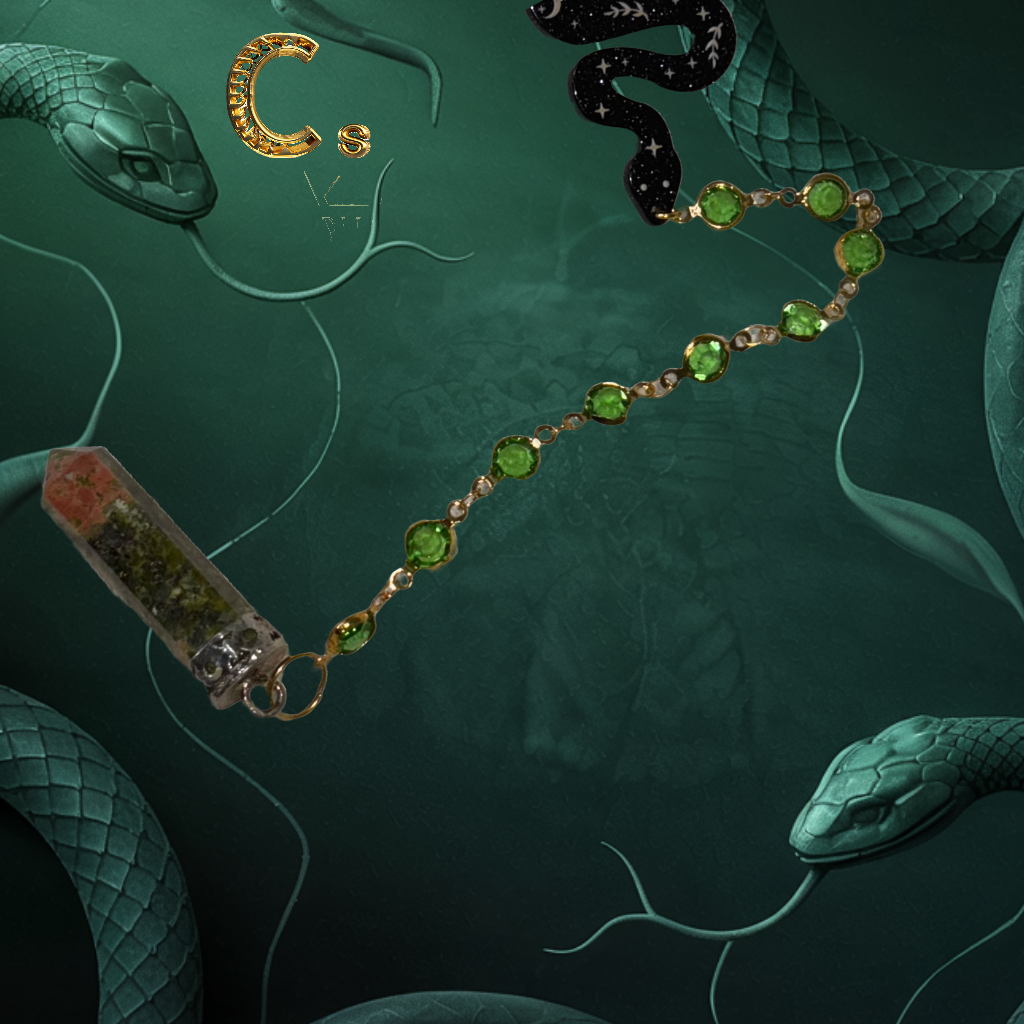 Each pendulum features a hand-selected unakite stone point, known for its grounding yet visionary properties—balancing heart and mind, and helping you peel back illusions to reveal deeper truths. Unakite resonates with Loki’s dual nature: raw emotion tempered by unexpected insight, mischief married to purpose.