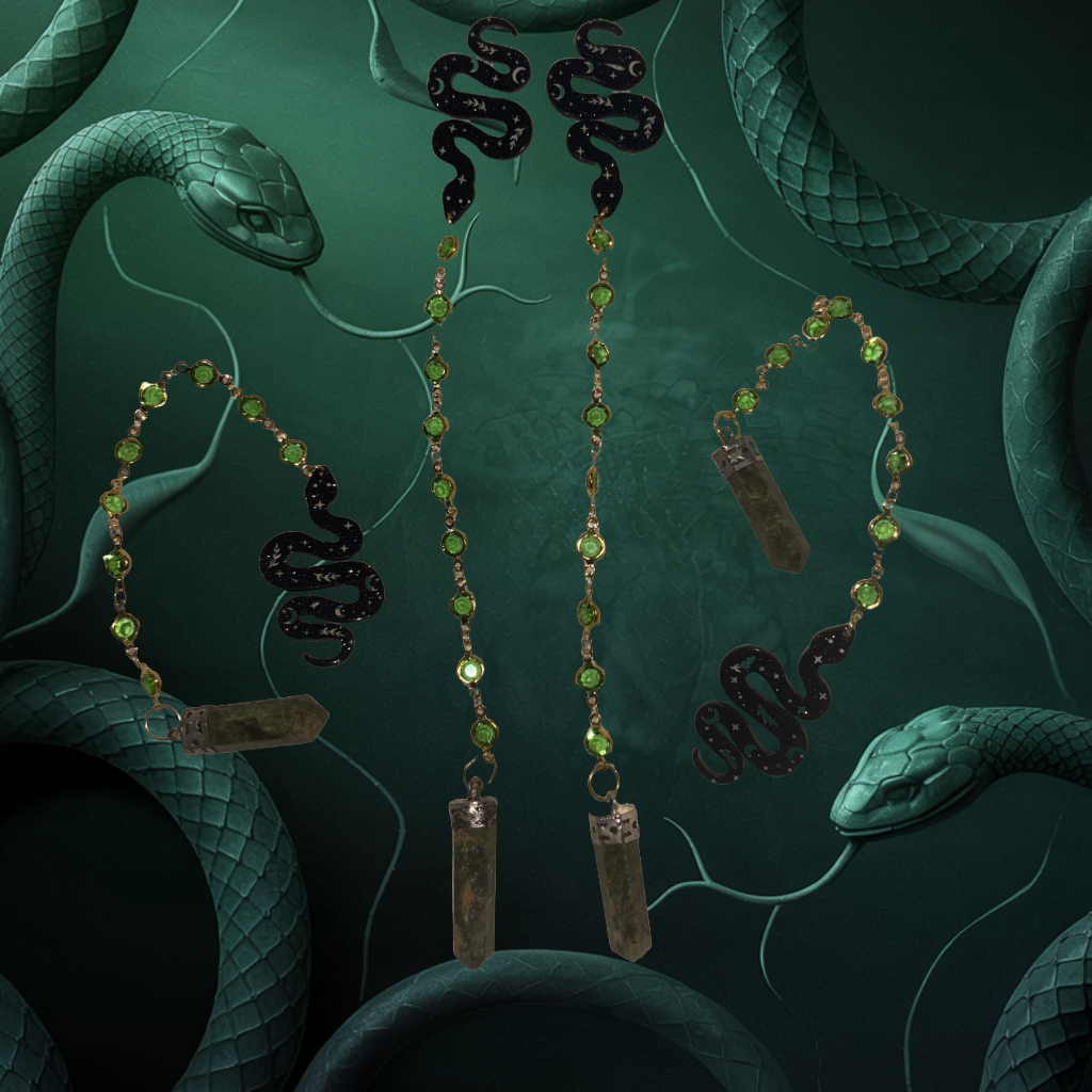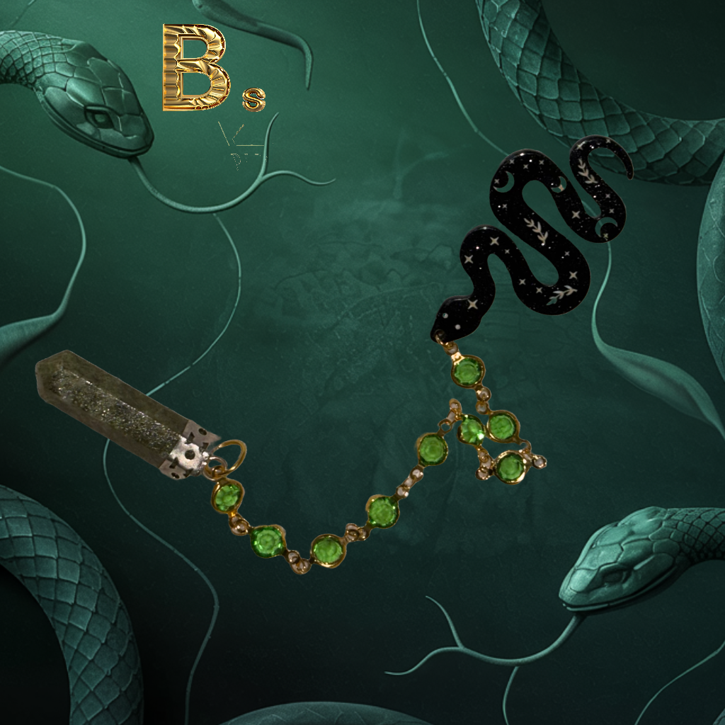 The back of the pendulum is set with a custom-cast resin snake, symbolic of transformation, mystery, and Loki’s ever-shifting essence. The snake is molded to fit comfortably in the hand, giving you a steady grip as the pendulum spins freely from your fingers.